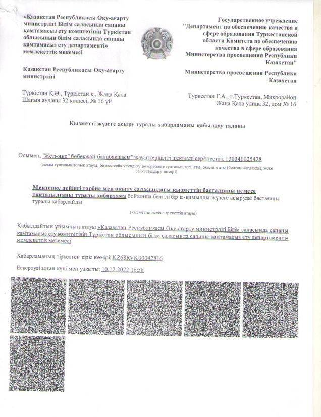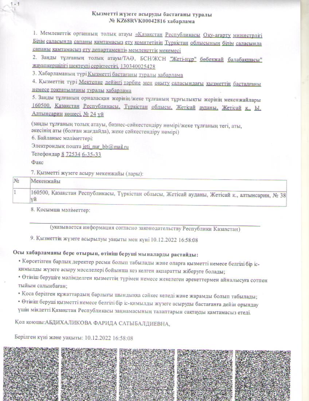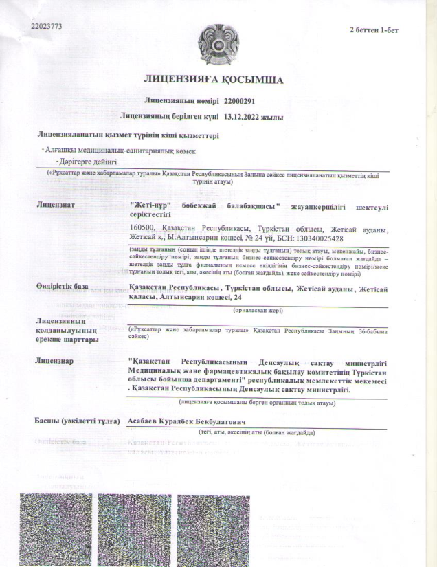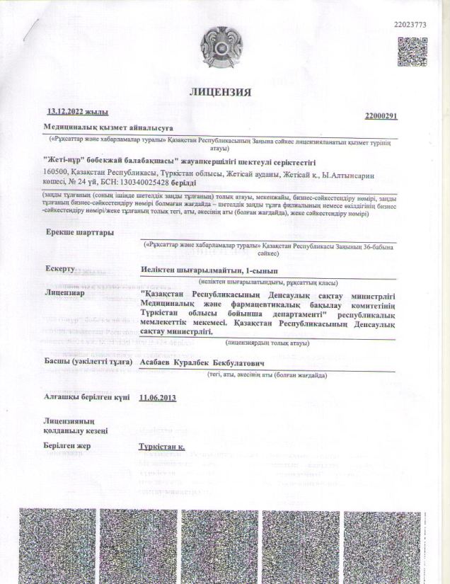 «Жеті-нұр» бөбекжай-балабақшасы» ЖШС